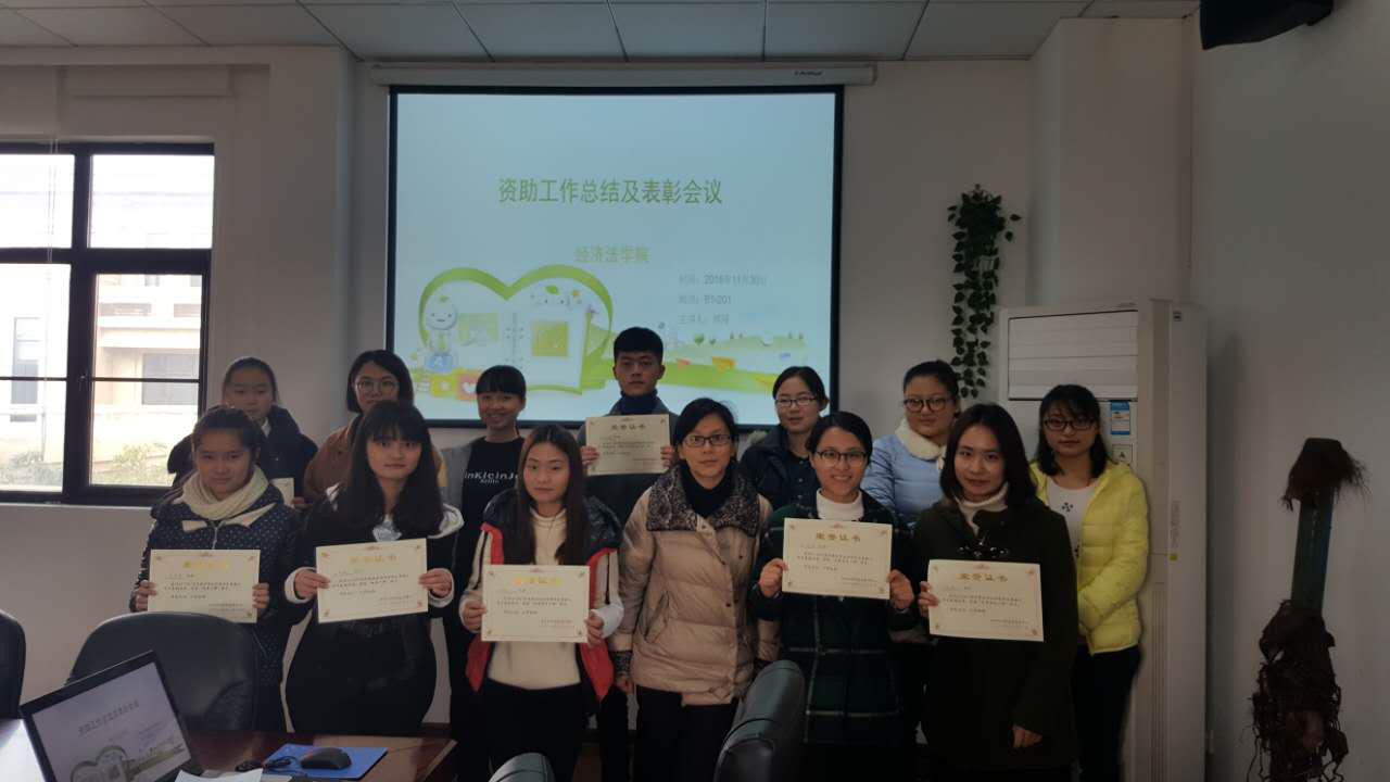 2016年11月30日,经济法学院学生资助管理中心在B1-201召开本年度工作总结及表彰会议,中心主任何媛媛同学主持该会议,中心指导教师傅瑾和各部门部长、干事参加。
