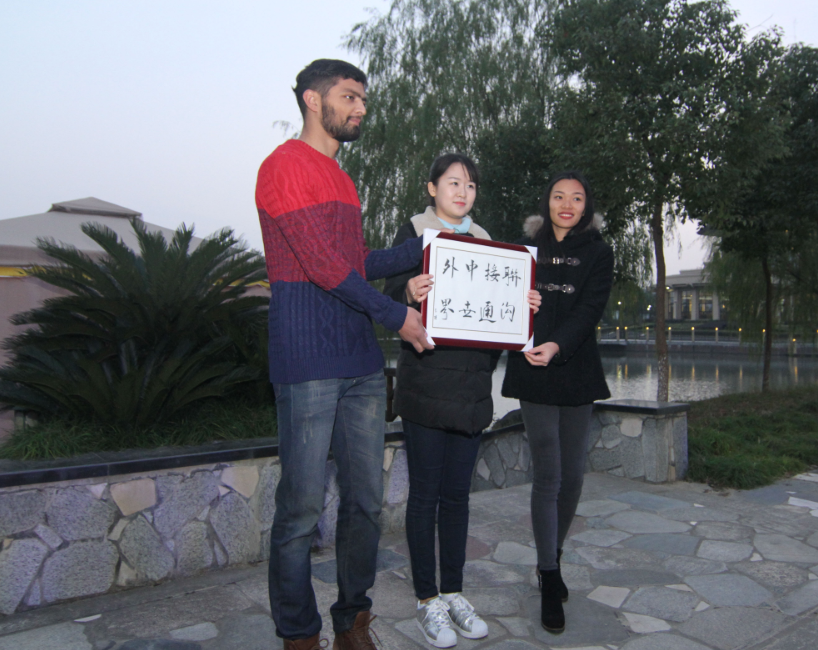 签约结束,“丝绸之路”律师学院和国际交流学院的学生互赠纪念品,用代表中华文化的墨宝和代表国际的世界地图饰品,表达了两院深入交流,共谋发展的美好愿望。
