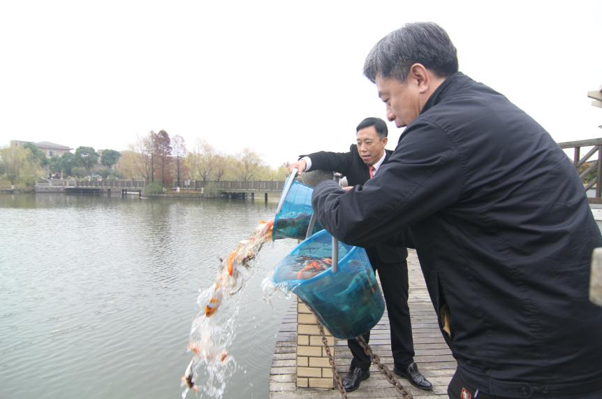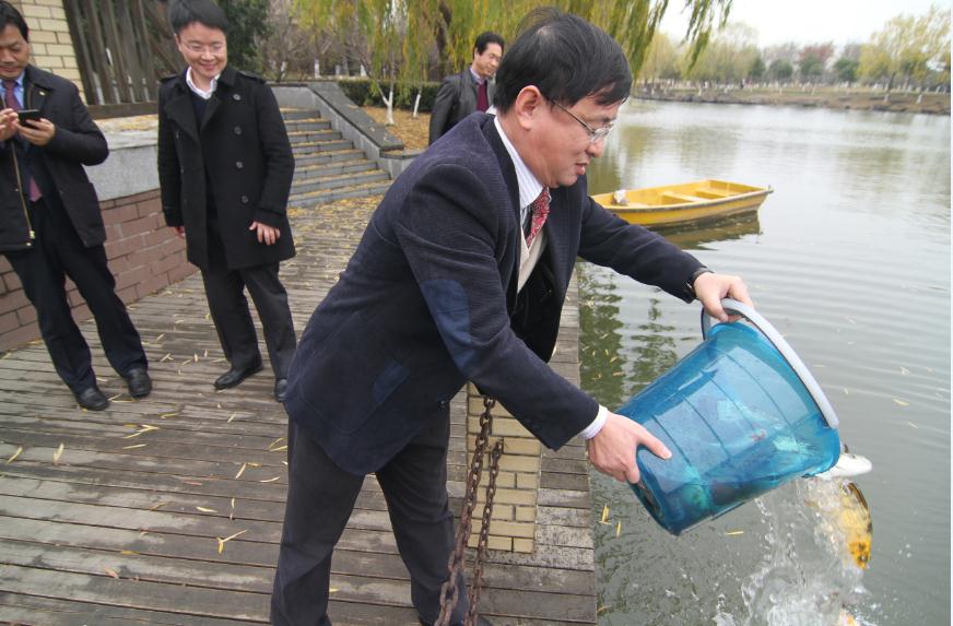12月20日,经济法学院党总支举办了鱼苗投放活动,校长刘晓红教授、党委副书记吴强同志、副校长关保英教授、经济法学院院长兼党总支书记胡戎恩教授以及“丝绸之路”律师学院校外导师们参加了此次活动。