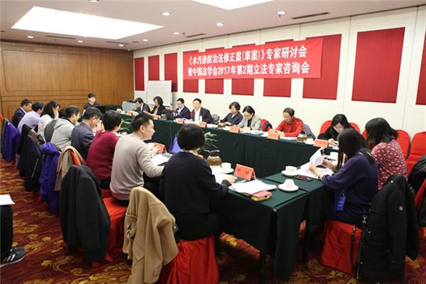2017年1月11日,《水污染防治法修正案(草案)》立法专家咨询会在北京召开。研讨会由中国法学会党组成员、副会长、学术委员会主任张文显同志主持。来自我校以及全国人大环资委、最高人民法院环境资源审判庭、环境保护部政策法规司、北京大学、清华大学、中国人民大学、中国政法大学、北京理工大学、天津大学、武汉大学、西北政法大学等单位的专家学者应邀出席了会议。我校王文革教授应邀出席。