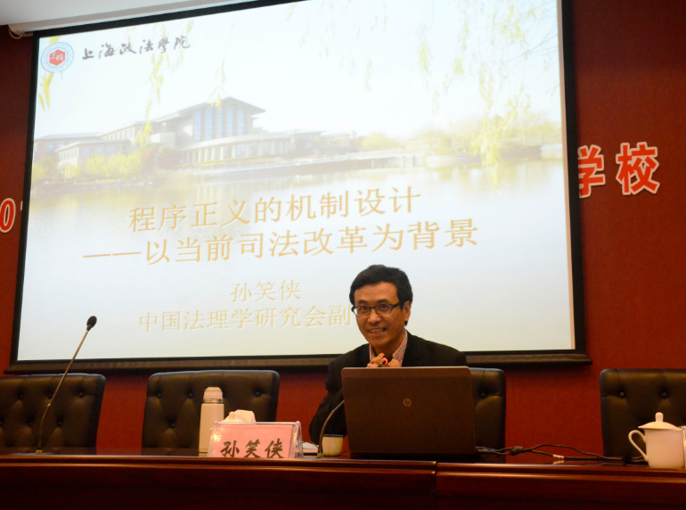 6月28日下午,新利18官方客服高端律师研究生暑期学校邀请了中国法理学研究会副会长孙笑侠教授,为所有学员开展了一场题为《程序正义的机制设计——以当前司法改革为背景》的讲座。