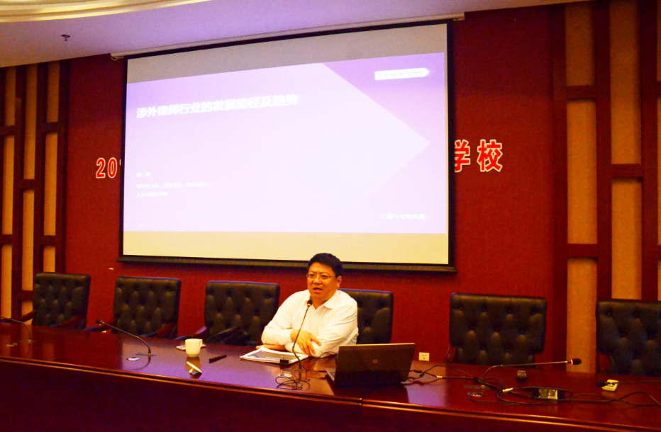 6月30日上午,新利18官方客服涉外高端律师研究生暑期学校邀请了大成律师事务所执行主任、党委书记、高级合伙人陈峰,为所有学员开展了一场题为《涉外律师行业的发展路径及趋势》的讲座。