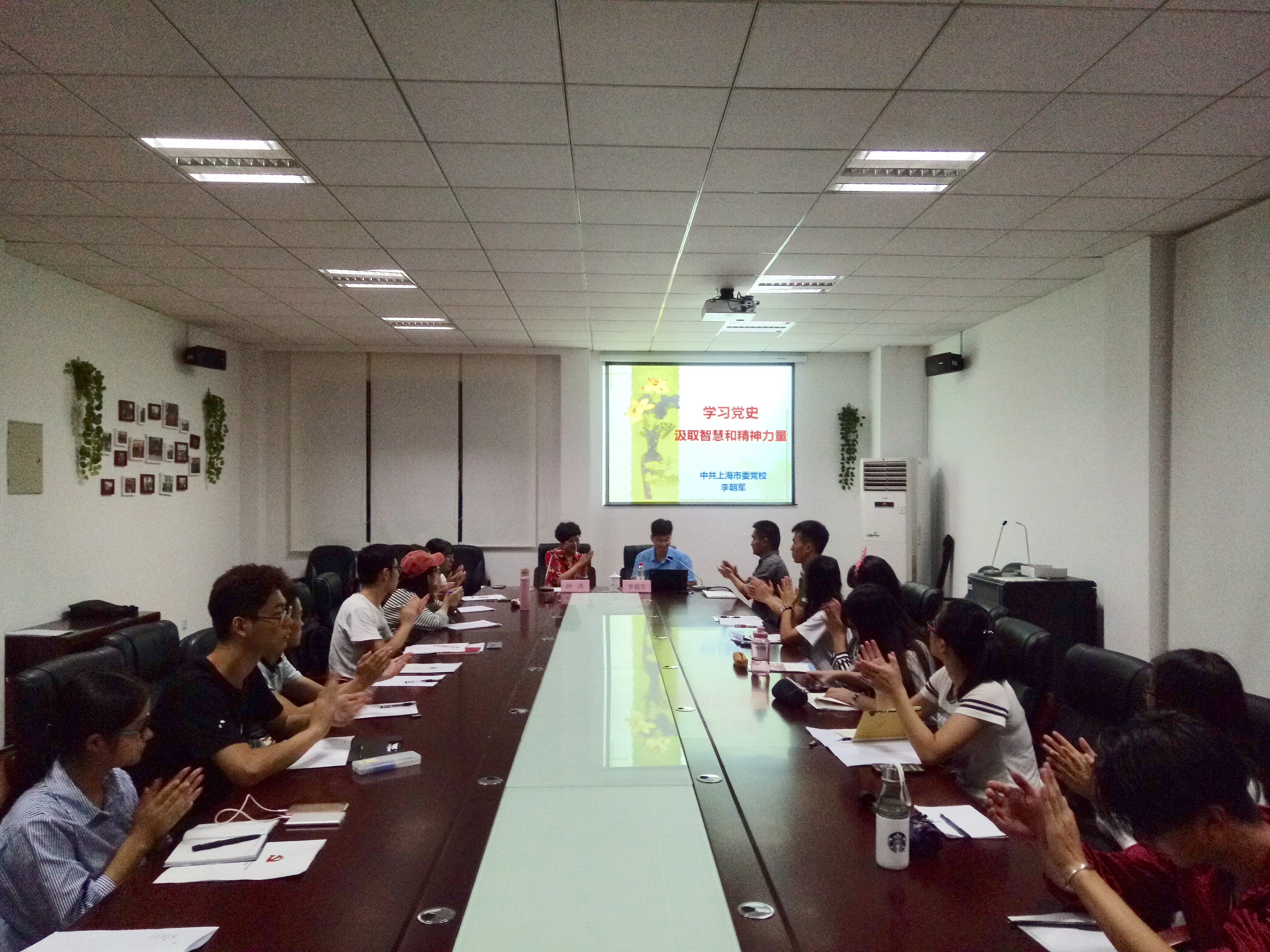 1010日晚,经济法学院分党校邀请复旦大学近现代史博士、上海市委党校李朝军老师为第二期积极分子培训班全体学员进行了主题为学习党史,坚定理想信念的讲座。讲座由经济法学院党总支副书记叶卉老师主持,辅导员黄益辉老师以及培训班全体学员参加了本次讲座。