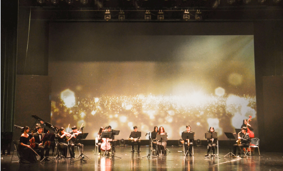 校艺术团也为我们带来了优美的拉丁和华尔兹。管弦乐演奏的《小幸运》、《那些年》、《let it go》更是把晚会推向了高潮。