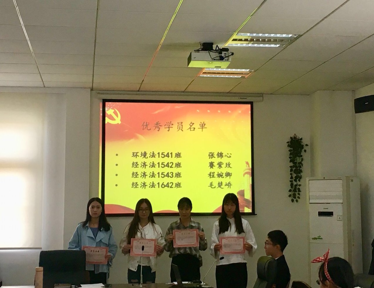 本期积极分子培训班为期10天,为学员们安排了党课讲座、电影观摩、小组讨论等形式丰富的学习内容,经过严格的培训及考核,共30名学员顺利结业,张锦心、赛紫枚、程婉卿、毛楚峤四名同学获得了优秀学员称号。黄益辉表示入党积极分子培训班是一个全新的开始,今后各位学员要以更严格的标准要求自己,继续学习、巩固在积极分子培训班中掌握的理论知识,争取在今后的学习中取得更优秀的成绩。