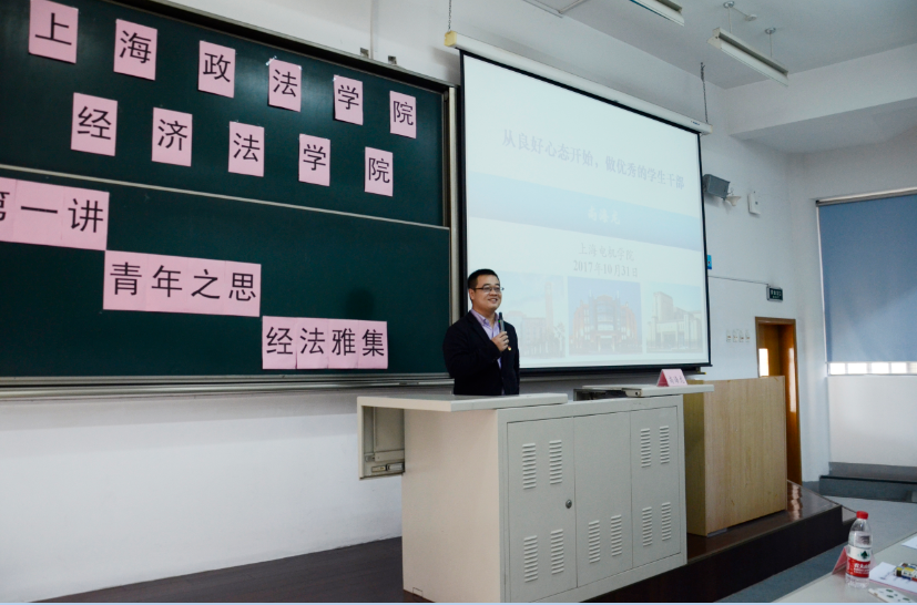 10月31日,经济法学院“青思雅集”培训第一讲在主教301B举行。此次讲座邀请到上海电机学院团委书记尚海龙老师作为主讲嘉宾,为全体学生干部带来了一场以“从良好心态开始,做优秀的学生干部”为题的精彩讲演。