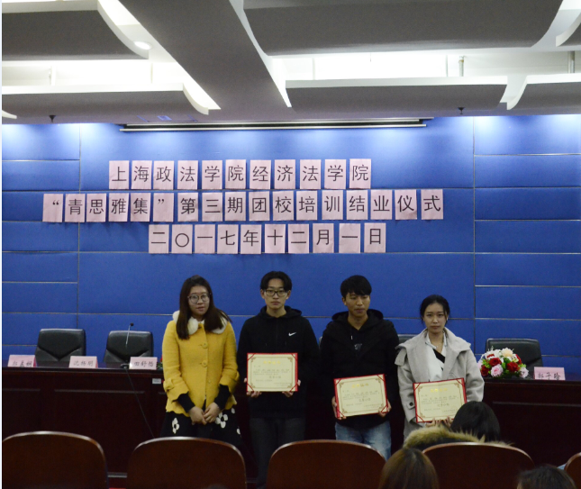 12月1日,经济法学院“青思雅集”团校培训第六讲暨团校结业仪式在信教112举行。出席此次结业仪式的嘉宾有经济法学院团委书记汪雪苑老师,经济法学院辅导员黄益辉老师,经济法学院团委副书记田舒怡,学生会主席周治宇,学生会副主席沈扬明、郭子晗、郭孟娴以及经济法学院团校第三期的全体学员。本次结业仪式由学生会组织部部长辛翼主持。