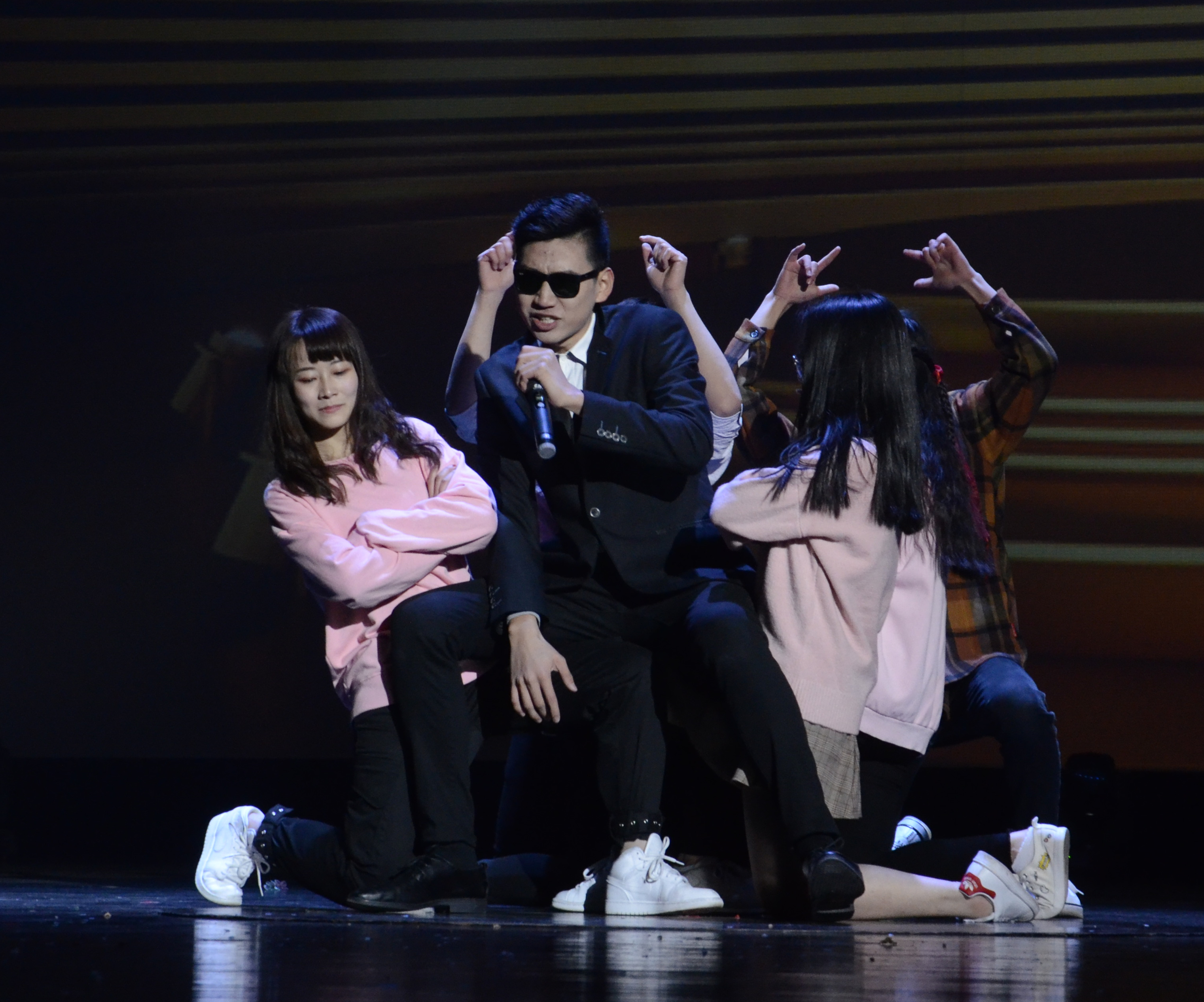 在主持人一番动人的开场白和大屏幕上的圣诞沙画播放完毕之后,晚会正式拉开序幕了。两首学生乐队的开场曲成功地将晚会地氛围调动了起来,随后的舞蹈串烧,街舞,说唱和民谣也得到了场下同学们热烈的响应。场下很多同学挥舞着手中的荧光棒为表演者喝彩,现场气氛达到了一个高潮。