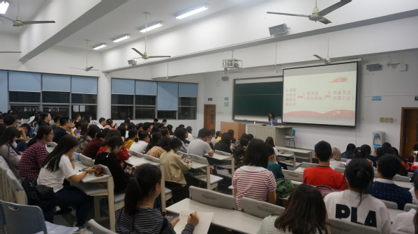 会议首先由奚琴琴讲解了党员发展程序。她希望各位入党申请人能够在提交入党申请书后坚持不忘初心,砥砺前行,坚持学习贯彻党的十九大精神,树立新时代青年学生理念与担当,自觉做共产主义远大理想和中国特色社会主义共同理想的坚定信仰者。随后奚琴琴详细地梳理了党员发展工作的一般程序,并在会议上与各入党申请人就“为什么要成为一名党员?”、“如何成为一名党员?”等问题进行了深入的交流。大家积极发言,交流气氛浓烈。