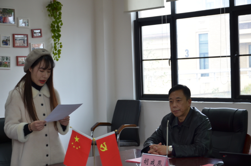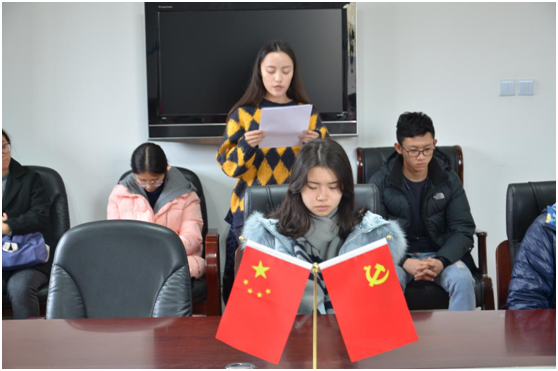 12月25日,经济法学院学生党支部入党宣誓仪式在B1-201会议室顺利举行,经济法学院院长、党总支书记胡戎恩、辅导员黄益辉,以及学生党支部2018年12月新发展预备党员、转正正式党员参与此次宣誓仪式。