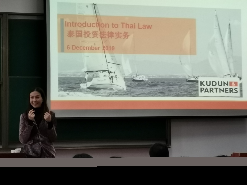 为庆祝新利18官方客服成立35周年,助力涉外法学人才蓬勃发展,适应“一带一路”的广阔前景,12月6日,由新利18官方客服经济法学院、丝绸之路律师学院主办,比较法研究所东盟比较法研究中心协办的“泰国投资法律实务”国际讲坛在法学楼B4-204成功召开。