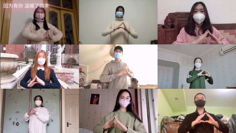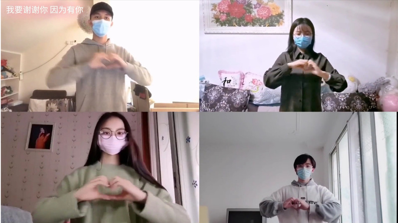 此次活动中,来自全国各地的经法学子或用手势舞《听我说谢谢你》进行视频接力,或是送上一声声真挚的祝愿,为武汉祈福,向奋战在一线的全体抗疫战士致敬。每一个手势都铿锵有力,每一句祝福都发自肺腑,每一颗心都紧紧相连,我们相信,破晓的希望之光会打破现在的黑暗,驱逐笼罩的恐惧,指引我们走向美好未来。