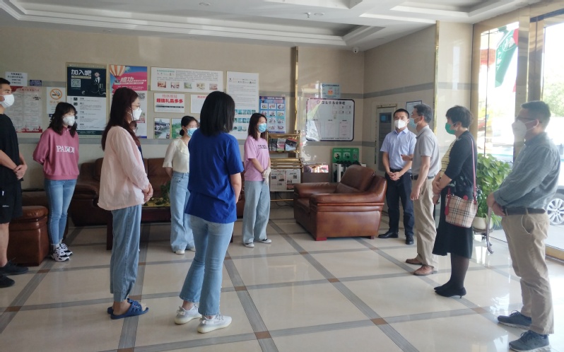 郭斌和叶卉亲切询问了学生目前在隔离点的生活,深入了解了他们在隔离点的居住条件、防控措施、饮食卫生等方面的具体情况。郭斌表示,疫情防控期间,各位同学在隔离点要坚持做好个人防控措施,不能放松警惕,时刻保持身心健康。郭斌结合自身就业工作经验和体会,对在场的毕业生提出了期望,他强调,要为就业做好最充分的准备,尽早就业、积累经验,以适应职场环境,为个人职业生涯发展打好基础。