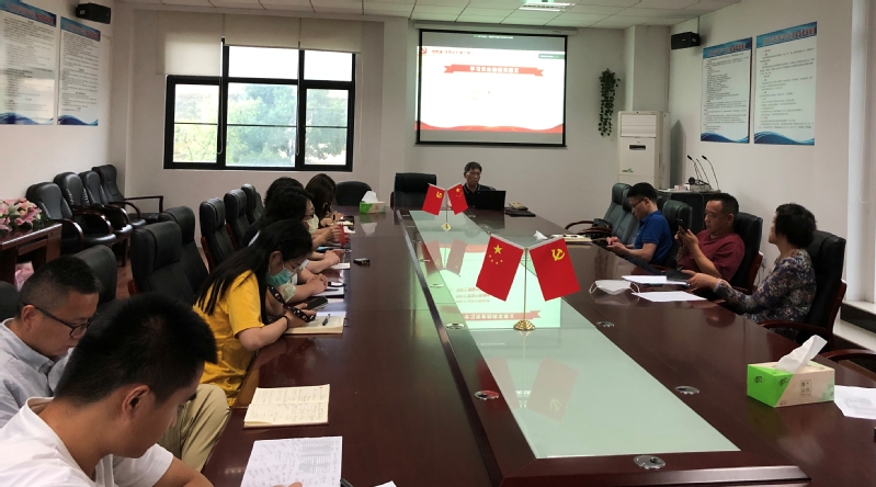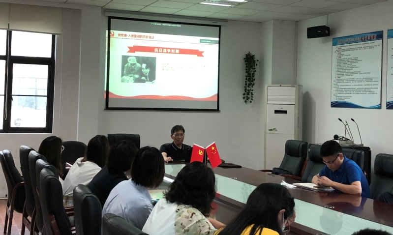党总支书记郭斌以“学党史,明初心,勇担当”为主题为全体党员上党课,他从学习“党史”重大意义,入党誓词的历史沿革,中国共产党人的初心和如何做一个有担当的合格党员等四个方面进行了学习辅导。他指出,从土地革命时期、抗日战争时期、解放战争时期、新中国成立初期到1982年入党誓词的5次历史沿革,充分表明了中国共产党与时俱进的鲜明政治品格和始终不渝的铁的纪律要求,这是我们党“不忘初心,继续前行”的政治密码。