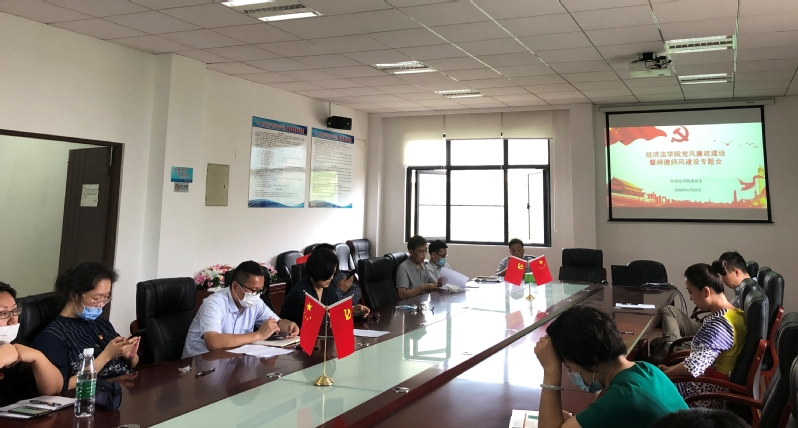 会议首先组织学习了学校下达的《经济法学院党建思政三年工作任务及年度任务书》和加强意识形态工作责任书的相关内容。并对今年上半年学院党风廉政建设和师德师风建设工作进行了总结。