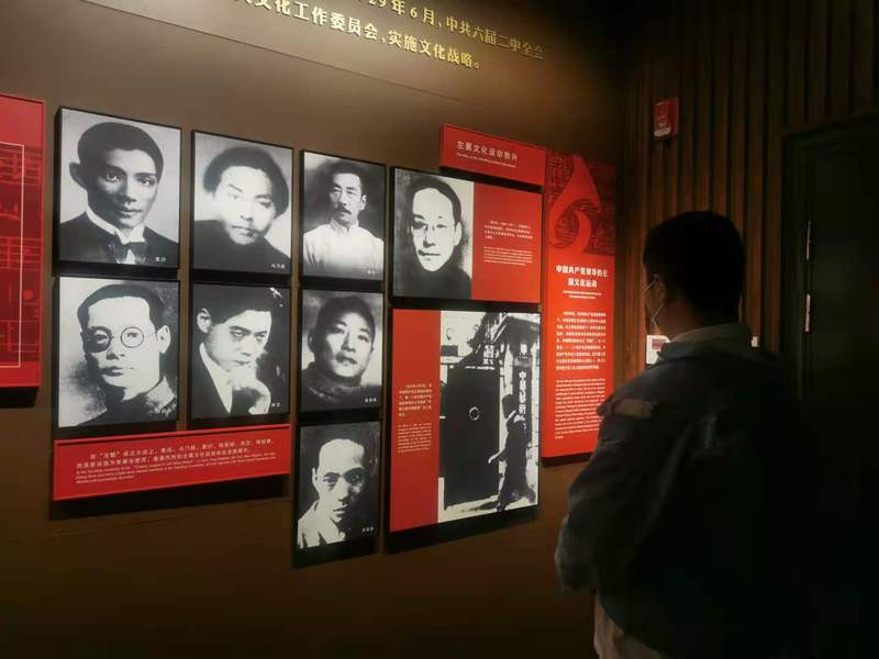 国歌展示馆总面积1500平方米,由序厅、国歌诞生厅、国歌纪念厅、国歌震撼厅、我和国歌厅等6个部分组成。一进入国歌展示馆,映入眼帘的便是一组群雕,象征着影片《风云儿女》主人公辛白华、阿凤及其祖父奔赴前线的事迹。继续向里走,可以看到一张为《义勇军进行曲》灌制的胶片。来到二层,一行行镂空的字体,将国歌用各个国家的语言,刻在了墙上,在这里大家还有幸听到了不同时期不同版本的《义勇军进行曲》,第一次以如此亲近又如此震撼的方式了解到国歌背后的故事。当《义勇军进行曲》一次次响起的时候,特别在听到第一版的《义勇军进行曲》时,学生党员们的内心无比的激动,仿佛亲身经历了这可歌可泣的伟大历程,灵魂深处受到一次次的震撼。一面“我和国歌”多媒体展示墙上每个屏幕里都有一个人娓娓动听地讲述“我和国歌”的故事。