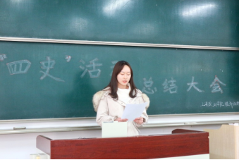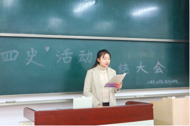 紧接着由上政第12学生党支部书记熊婷针对本年度的“四史”学习教育进行了总结,提出了各位学生党员及入党积极分子不能将此次总结大会作为一个终点,而是要继续坚持“历史结合现实学、历史联系实际学”,学会边学习边思考,不断培养自己的历史思维、历史视野和历史担当。