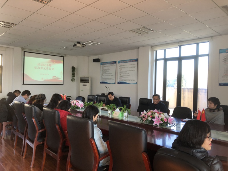 1月8日,经济法学院召开2020年度民主生活会征求意见座谈会,征求对学院领导班子及其成员的意见建议。党总支书记郭斌同志、院长胡戎恩教授、党总支副书记叶卉同志、教师代表、师生代表分别参加了会议。