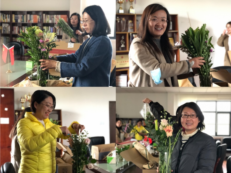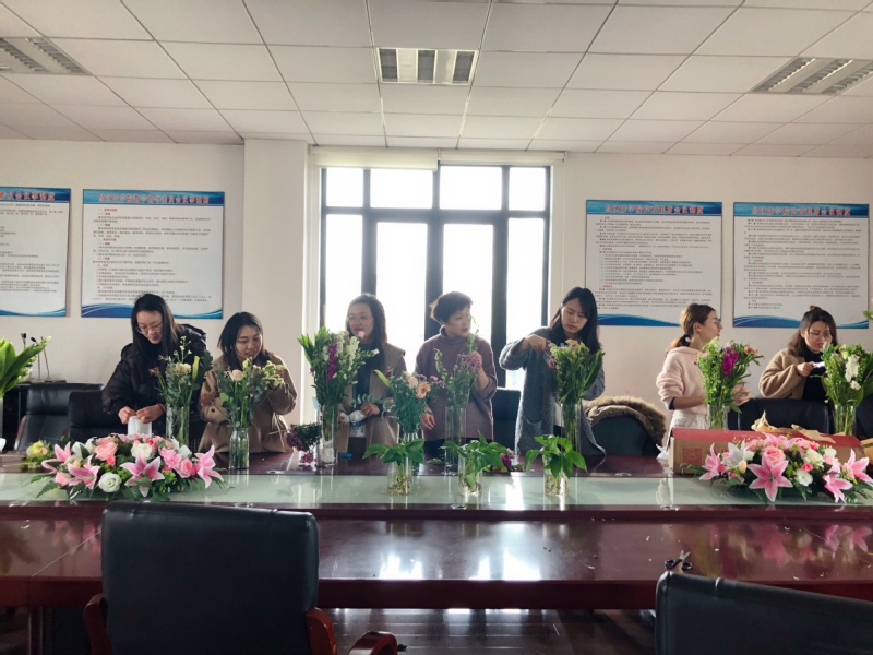 3月8日,经济法学院女性教职工齐聚一堂,举行“巾帼之花美丽绽放”插花活动,庆祝三八妇女节到来,并为建党100周年献礼。