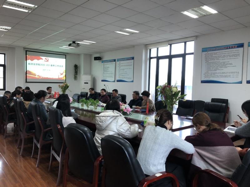 3月16日上午,经济法学院在法学楼B1-201会议室召开2021年度工作会议,传达学校春季学期工作会议和高校分类评价工作推进会议精神,总结2020年事业发展成绩,动员部署全年重点工作。院长胡戎恩主持并围绕学院重点工作动员部署,党总支书记郭斌讲话,学院班子成员和全体教职工参加会议。