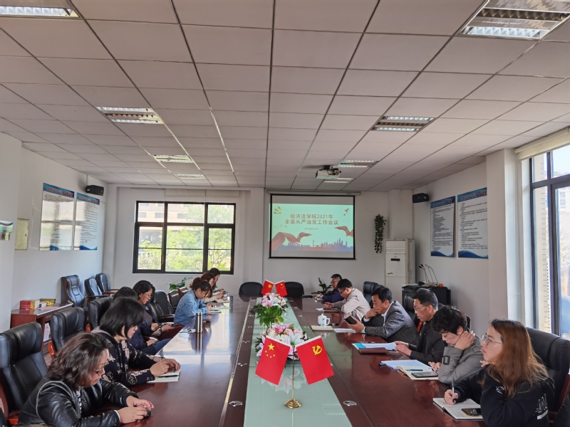 4月13日,经济法学院2021年全面从严治党工作会议在法学楼B1-201会议室召开。学院党总支书记郭斌同志出席并讲话,党总支副书记、院长胡戎恩同志主持会议。学院领导班子成员、总支委员、教研室主任,各党支部书记、支部委员和全体教职工参加会议。