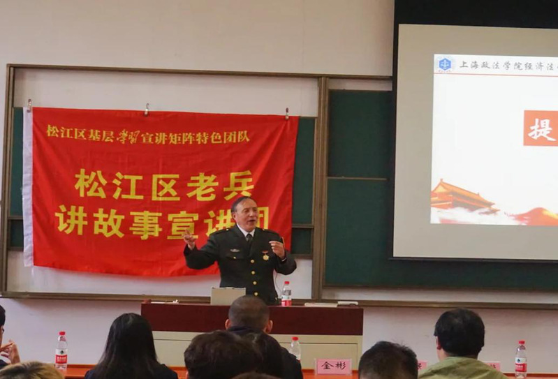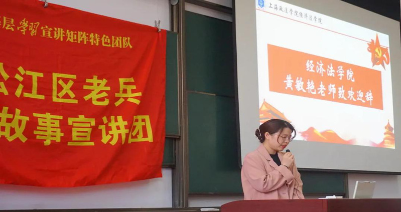 4月20日,为庆祝中国共产党成立 100 周年,讴歌党的辉煌历程和丰功伟绩,引导广泛大学生发扬革命传统和优良作风,由校团委主办、经济法学院承办的“1921”主题系列活动之红色党史报告会在B4-204举办。松江宣讲团退伍老兵朱渭民、金彬,上政第11学生党支部书记黄敏艳老师、经济法学院学生会副主席苏扬以及部分经法学子参加了本次活动,共同回顾百年奋斗历程,深化党史学习教育,挖掘身边红色故事。