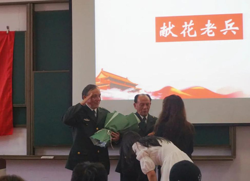 宣讲结束后,进入互动环节,参会成员通过提问老兵的形式来分享自己的感悟心得;互动完毕,活动负责人向嘉宾献花。全体参会人员合影留念。通过退伍老兵的精彩宣讲,经法学子不仅理解了革命先辈的无私奉献,更清晰了我辈中人的职责所在。作为新时代的新青年,应当紧紧把握历史这本教科书,坚决拥护党的引领,肩负起共产党人的责任与担当。(撰稿:夏琛、蒋驿绎/摄影:吴奇朝)