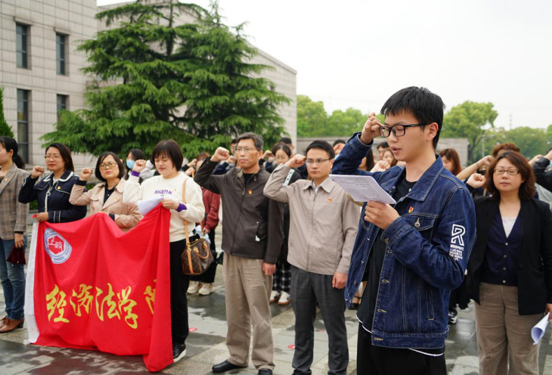 为了弘扬烈士精神,缅怀先烈功绩,4月27日下午,经济法学院教工党支部组织教师党员和部分学生党员代表前往松江烈士陵园,举行悼念革命烈士仪式,以寄托对革命先烈的无限哀思,颂扬革命先烈的崇高精神。经济法学院党总支书记郭斌、副院长肖卫兵等出席本次活动。