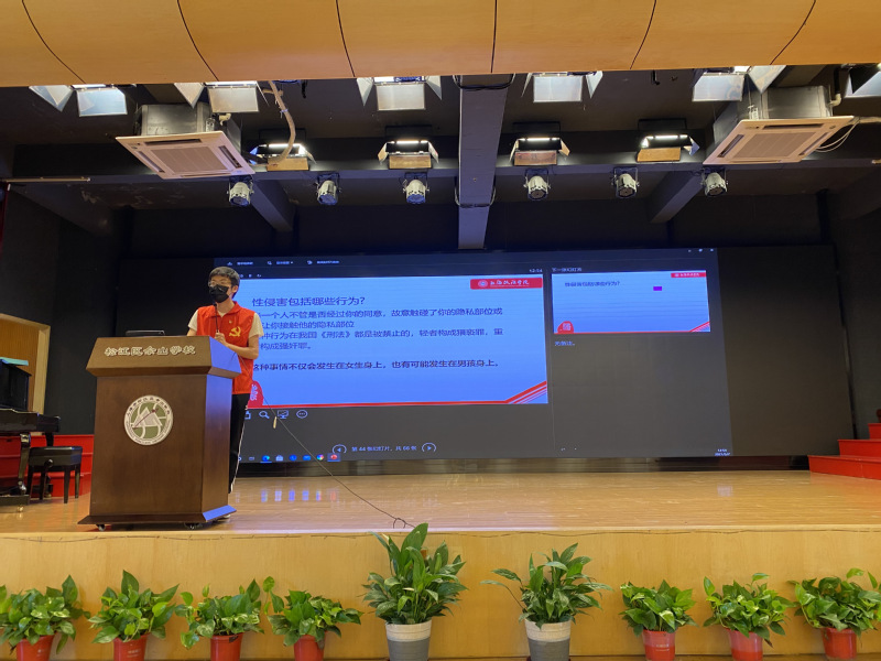 本次普法讲座的主题是“青少年法律知识”,学生党员主要围绕青少年犯罪认识误区、青少年校园霸凌、5月1日新规之非机动车安全管理条例解读以及预防未成年人性侵四个大标题展开讲述。通过盗窃、抢劫、校园暴力等讲述最新的刑法修正案有关刑事年龄以及共犯构成的条文,提醒未成年的同学们要谨慎处理平时的社交,平时上下学要注意遵守法规、注意安全。若遇到社会分子利用未成年人进行犯罪一定要及时告诉家长或老师,保护自己,关爱他人。