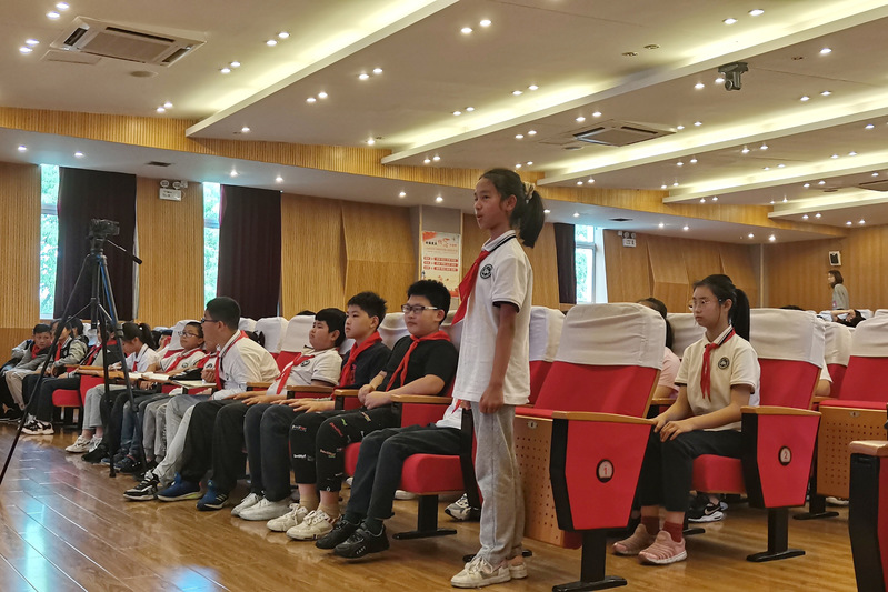 宣讲过程中,佘山学校的同学们认真学习,主动做好学习笔记,积极参与互动,纷纷举手回答主讲人提出的问题,现场学习氛围浓厚。讲到开国大典时,当毛主席的声音响起的那一刻,原本略显嘈杂的讲堂顿时安静下来,同学们怀着崇敬的心情,用热烈的掌声致敬革命先辈。