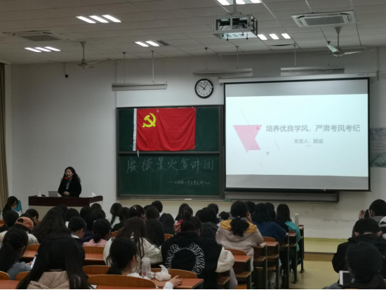 为引导大一新生培育优良学风,掌握高效学习方法,12月9日上午,上政第10学生党支部在A8 102教室开展了“汲取榜样力量 共创优良学风”主题党日活动。支部书记颜涵老师,预备党员卢昱、王海迪,发展对象沈浪花、蔡思敏,入党积极分子徐笑宇、马艺瑄,经济法21062、21063全体同学共100余人参与此次活动,活动由林采琪主持。