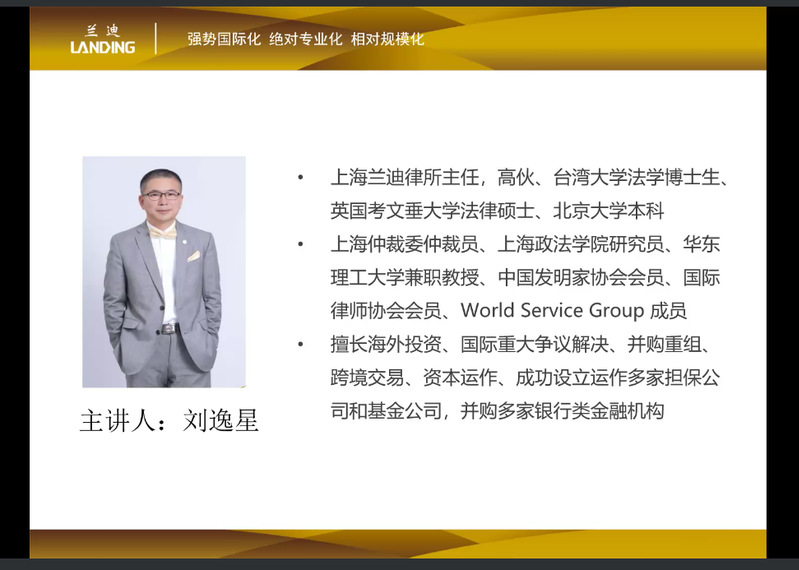 6月27日下午,上海市涉外高端律师研究生暑期学校第二场专家讲座开讲。本次讲座邀请到上海兰迪律所主任、高级合伙人刘逸星律师,为广大学员带来一场题为《法律人发展的大蓝海—海外投资》的精彩讲座。经济法学院商建刚副教授为本次讲座主持。