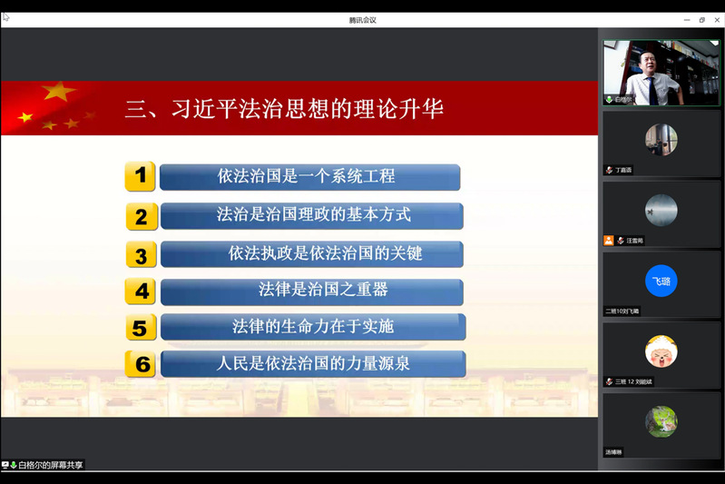 关保英从习近平法治思想的概要出发,阐述了习近平法治思想属于习近平新时代中国特色社会主义思想体系的重要组成部分。他对法治思维、法治原则、法治体系、法治覆盖和法治运行几个重要方面的科学内涵做出了解读。