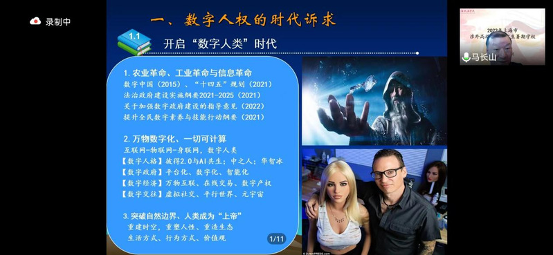 马长山围绕“数字人权的时代诉求”、“数字人权的公民权转化”、“数字公民权利的法治保障”三个部分展开论述。他介绍了中国有关数字法治的一系列最新政策,提到当前人类社会正在进入“万物数字化、一切可计算”的新生活状态,进而衍生出数字机关、数字人格、数字政府、数字经济、数字交往等全新概念。在这样的大背景下,人权保护面临着全新的威胁和挑战“第四代人权”日渐呈现。