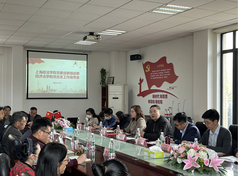 4月11日下午,根据学校党委第五轮巡察工作部署,校党委巡察组进驻经济法学院,在B1-201会议室召开巡察工作动员会。学校党委巡察工作领导小组副组长、校党委副书记、纪委书记、监察专员、巡察工作办公室主任潘牧天,巡察组组长魏传成、副组长张丽艳及成员出席会议。学院领导班子、全体教职工及学生代表参加会议。会议由党总支副书记、院长胡戎恩主持。