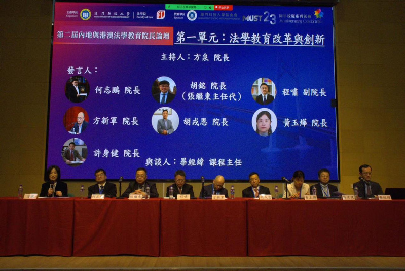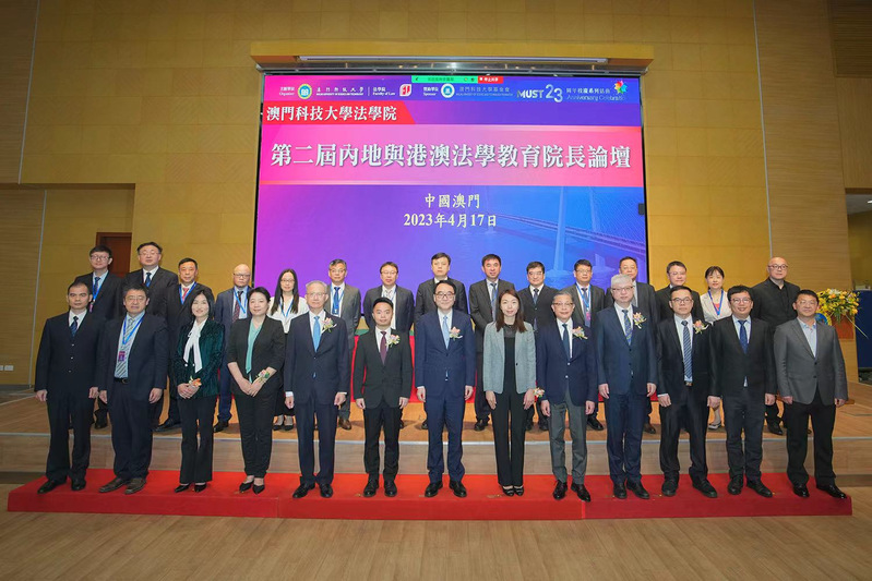 2023年4月17日上午9时30分,澳门科技大学法学院第二届“内地与港澳法学教育院长论坛”于大学N101演讲厅隆重举行。活动由澳门科技大学法学院主办,澳门科技大学基金会支持。来自内地及港澳、德国法学院的二十位院长云集澳科大共商法学教育创新与改革。