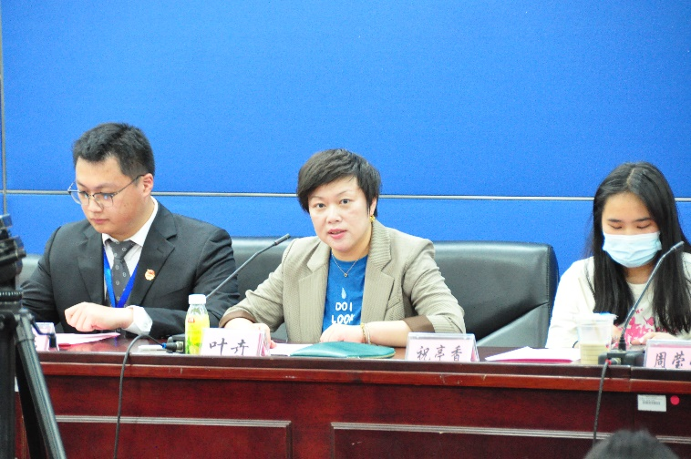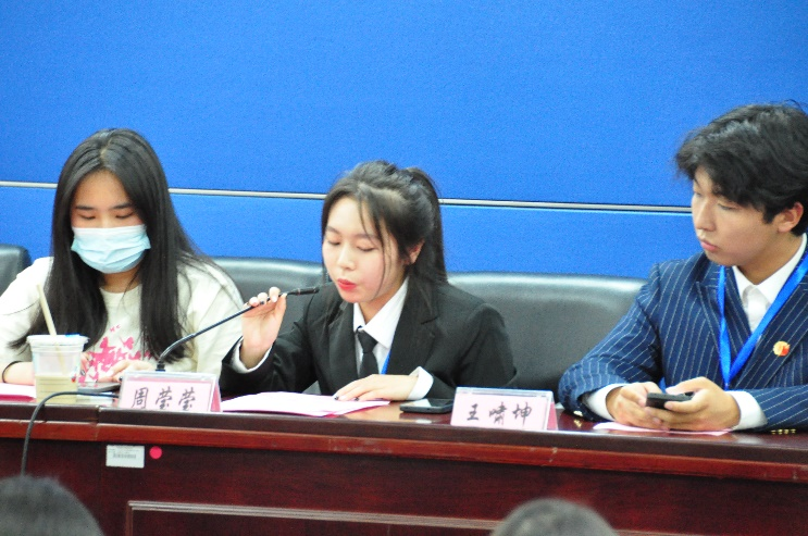 周莹莹作上一年度经济法学院团委、学生会工作总结报告。她指出各部门之间形成了内外循环机制统一体,紧跟时代脚步,深化改革创新,在过去一年引领经法团学走向了更加广阔的天地。