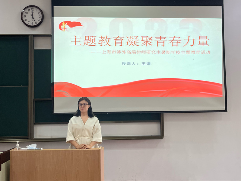 7月18日傍晚,新利18官方客服涉外高端律师研究生暑期学校开展了学习贯彻习近平新时代中国特色社会主义思想的主题教育。本次主题教育由王娟主讲,主题为凝聚青春力量。