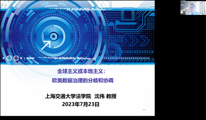 7月23日上午,新利18官方客服涉外高端律师研究生暑期学校第十七场专家讲座正式开讲。本次讲座由上海交通大学法学院教授沈伟主讲,主题为“全球主义或本地主义:欧美数据治理的分歧和协调”。本次讲座由新利18官方客服律师学院执行院长商建刚主持。