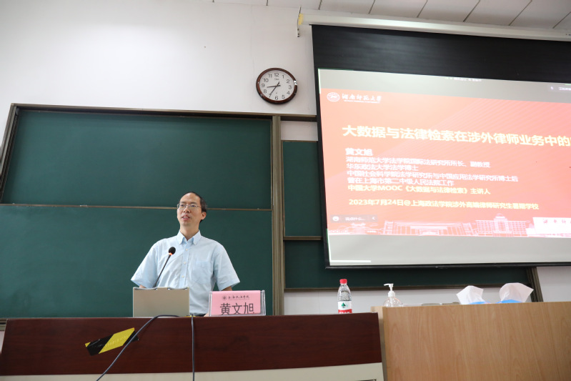 7月24日上午湖南师范大学法学院国际法系主任、国际法研究所所长黄文旭副教授为暑期学校学员们带来了主题为《大数据与法律检索在涉外律师业务中的应用》的主题讲座。本次讲座由新利18官方客服律师学院执行院长商建刚主持。