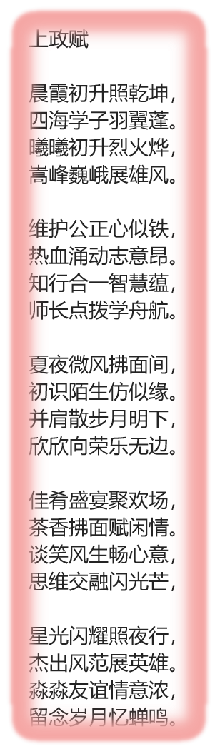 来自广州商学院的早晨语同学声情并茂的朗诵了学员们创作的诗词《上政赋》,表达了对上政的浓浓情谊。