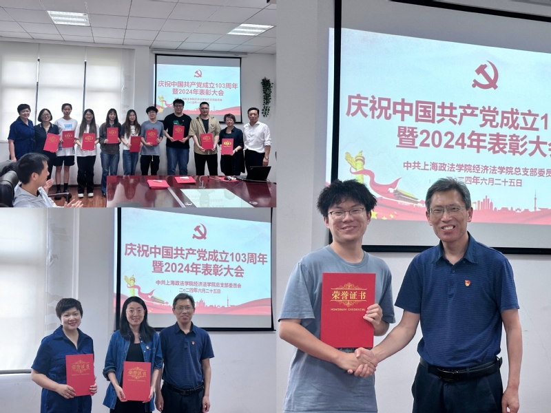2024年7月1日是中国共产党成立103周年,为表彰先进、树立典型,进一步激发全院师生的使命感和责任感,经济法学院于2024年6月25日隆重举行庆祝中国共产党成立103周年暨“七一”表彰大会。学院党政领导班子成员、全体教职工和学生党员代表参加会议。会议由党总支书记郭斌主持。