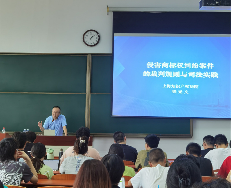 2024年9月19日下午,上海知识产权法院钱光文庭长莅临我校,以“侵害商标权纠纷案件的裁判规则与司法实践”为主题在B4-203教室面向广大师生进行实务授课,经济法学院副院长曹阳教授、知识产权教研室佟秀毓老师以及来自不同学院的120余名同学参与了本次讲座。