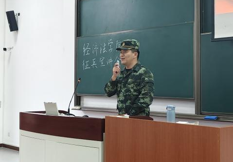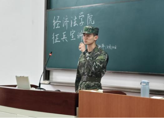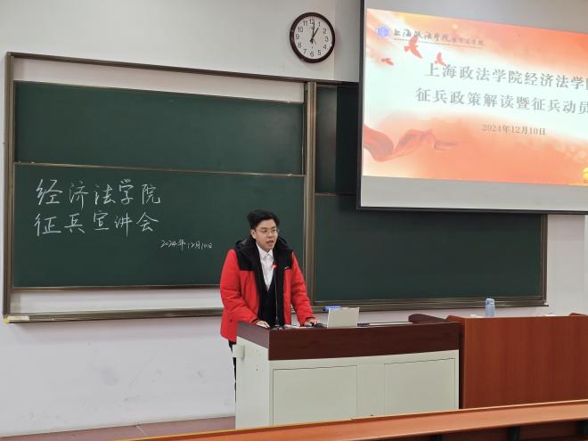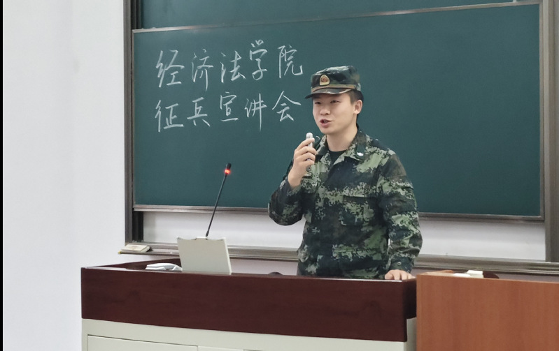 为进一步做好大学生应征入伍工作,帮助学生了解应征入伍相关政策和流程,鼓励学生积极应征入伍,为国防事业添砖加瓦,2024年12月10日下午,经济法学院于B4-105举行2025年度征兵政策解读暨征兵动员会。此次活动特别邀请到孟俊奇、徐佳乐、董杰三位退伍士兵为现场同学带来了一场别开生面的征兵宣讲,本次征兵政策解读暨征兵动员会由辅导员周嘉晟主持。