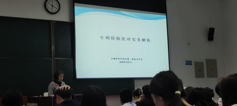 陆凤玉法官对专利侵权判定规则进行了系统性的讲解,重点聚焦于外观设计专利,同时兼顾发明与实用新型专利。她深入阐释了外观设计的法律定义及其保护范围的确定依据,强调以图片为主、简要说明为辅的原则。对于发明与实用新型专利,陆法官简要介绍了权利要求书的结构,并详细讲解了侵权认定的两大核心原则——全面覆盖原则和等同侵权原则,以及技术特征的分解与对比方法。在讲解过程中,她穿插了多个案例,帮助同学们更好地理解和消化所学内容。通过构建清晰的理论框架和解析实务要点,陆凤玉法官使同学们对专利侵权判断的方法和步骤有了初步且清晰的认识,大家均表示受益匪浅。