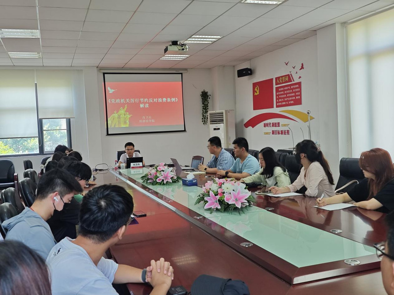 为进一步推动深入贯彻中央八项规定精神学习教育走深走实,弘扬厉行节约、艰苦奋斗的精神,2025年6月17日下午,经济法学院党总支委员、副院长肖卫兵于B1-201以“《党政机关厉行节约反对浪费条例》解读”为题讲授专题党课。本次学习会由上政第10学生党支部书记周嘉晟主持,上政第10学生党支部全体党员参加本次党课学习。