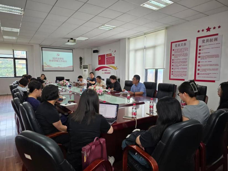 9月23日上午,经济法学院2025年秋季学期工作会议在B1-201会议室召开。学院领导班子成员、全体教职工参加会议。会议由院长胡戎恩主持。