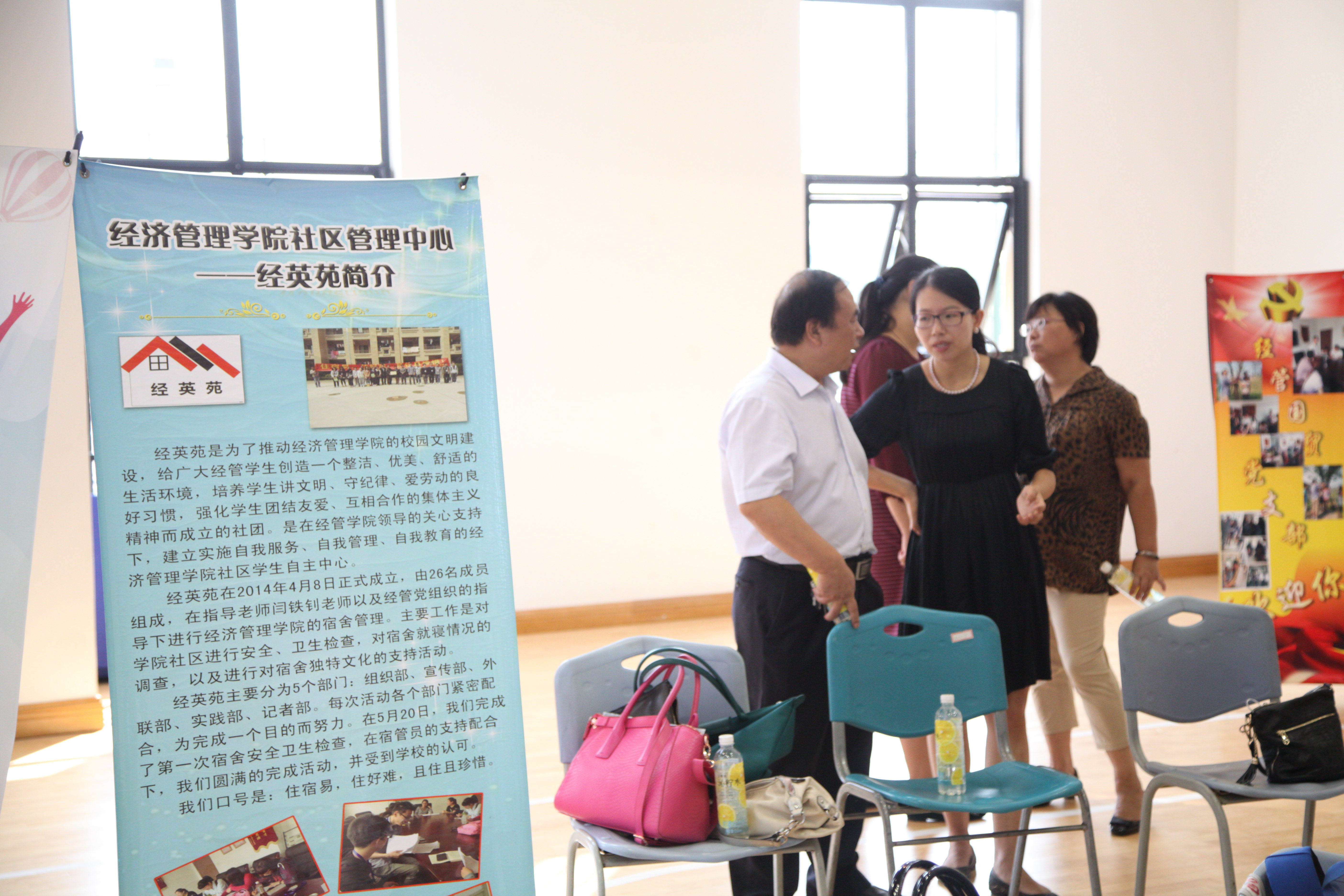 九月五日、六日,经济管理学院大一新生报到,为了使新生更好的适应大学生活,便于我们今后工作的进行,经英苑工作人员提前到校,进行今年的迎新活动。为了使新生更好的认识我们社团,我们特做了展架、海报等宣传物品对经英苑做出了详细介绍。