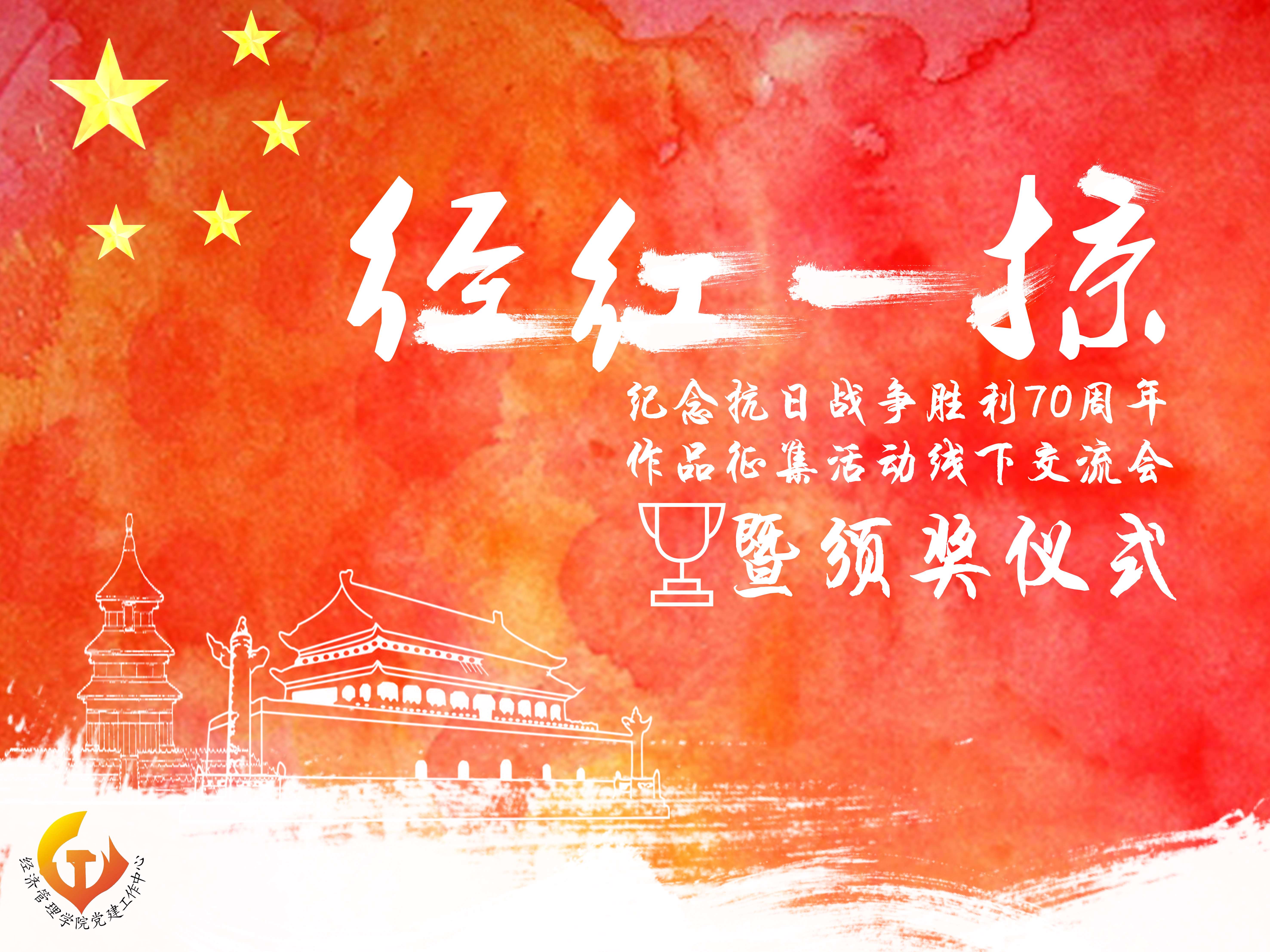 11月5日下午,经济管理学院学生党支部在主教401A举行了“经‘红’一掠” 纪念抗日战争胜利70周年作品征集线下颁奖活动。活动现场气氛热烈,整个会场座无虚席。