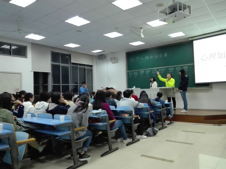 活动分为三个环节,心理测试、心理知识竞赛和观看心理学电影。心理测试环节内容为IQ测试,EQ测试,幸福测试,性格测试,自制力测试,吸引了众多同学积极参与,大家在测试中了解自我,写出感恩,描绘梦想。心理知识竞赛在庸夫楼308顺利举办,活动现场气氛活跃,参赛选手积极抢答,同学们从中了解了很多心理知识,活动最后评出了一二三等奖并进行了颁奖。观看心理电影环节,为同学们选择了一部关于心理和教育的电影——《地球上的星星》。
